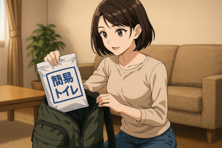 - 携帯トイレの備蓄:凝固剤タイプが便利。1人1日5回×3日分を目安に。